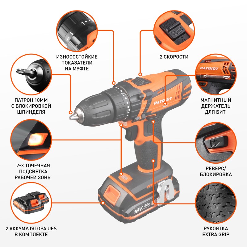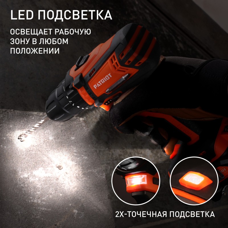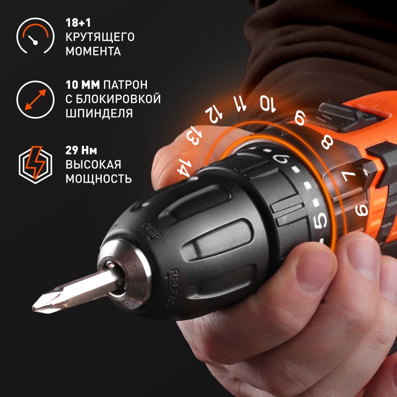 • Сбалансированный и бесшумный редуктор, позволяющий получить большое значение крутящего момента и высокую скорость вращения патрона на второй передаче.