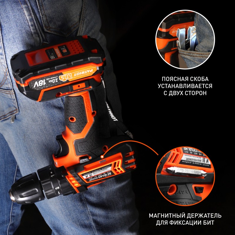 • Крюк для фиксации инструмента на поясе, петля для фиксации инструмента на кисти и магнитные держатели повышают удобство использование при работе.