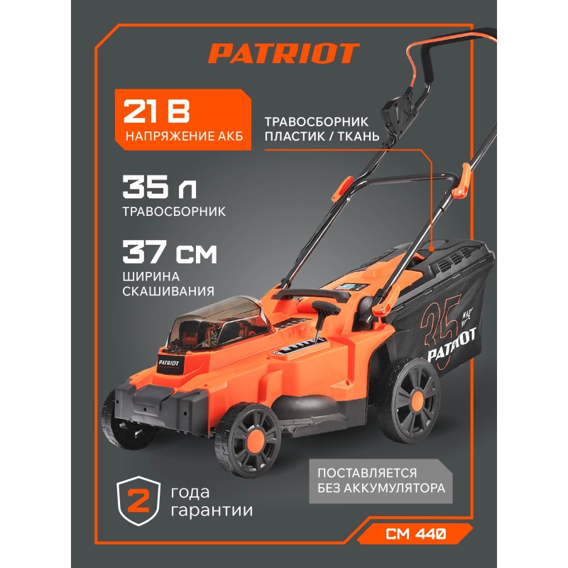 21 В, Li-ion, 4.0 Ач, ширина скашивания 37 см, высота скашивания 25-75 мм, 6 режимов регулировка высоты, травосборник 35 л, мульчирование, задний выброс травы, корпус ABC пластик, без АКБ и ЗУ