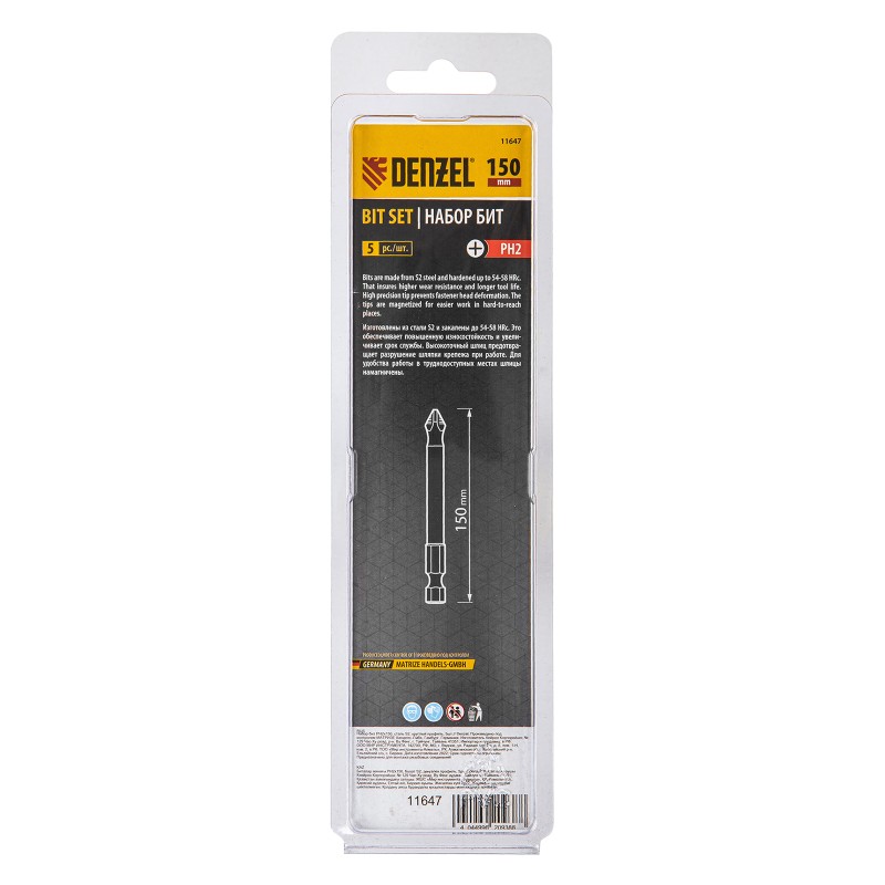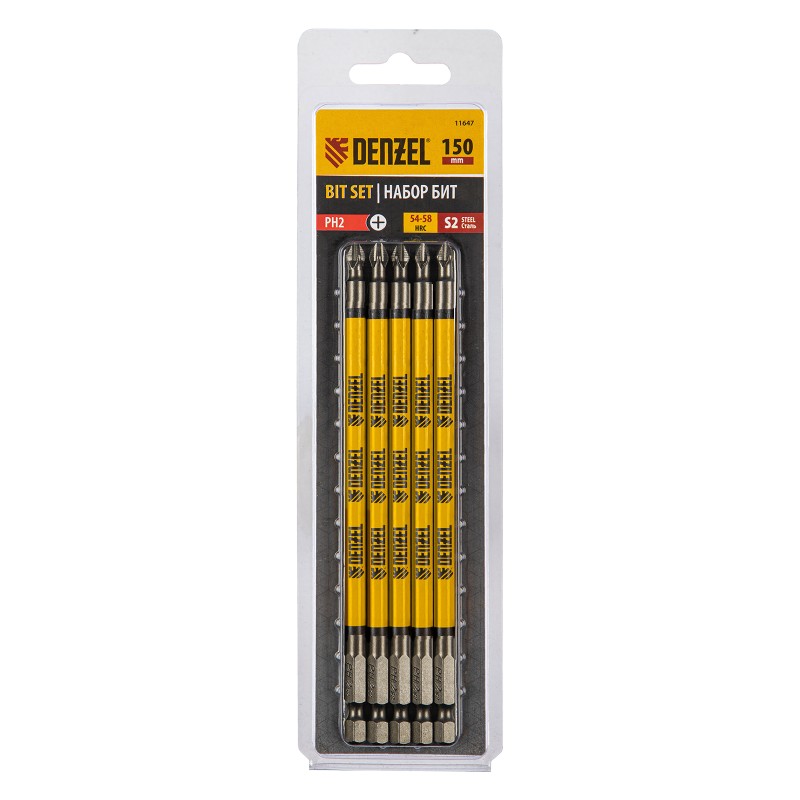 Набор односторонних бит PH2 x 150 мм Denzel 11647 — это 5 сменных насадок из стали S2 с крестообразными шлицами и шестигранными хвостовиками 1/4". Профессиональная оснастка рассчитана на работу с шуруповертом, обеспечивает быстрый монтаж и демонтаж резьбовых соединений с углублением PH2.