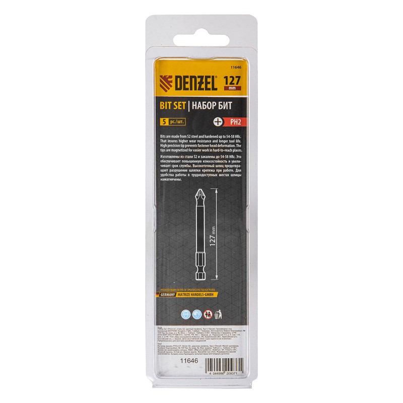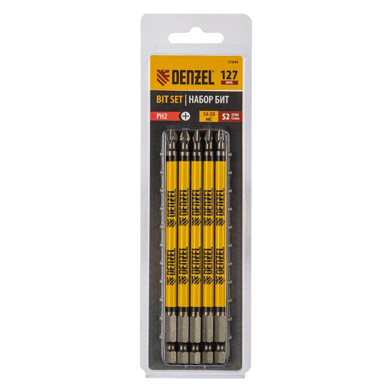 Бита PH2х127, сталь S2, цилиндр., 5шт. Е 6,3 Denzel