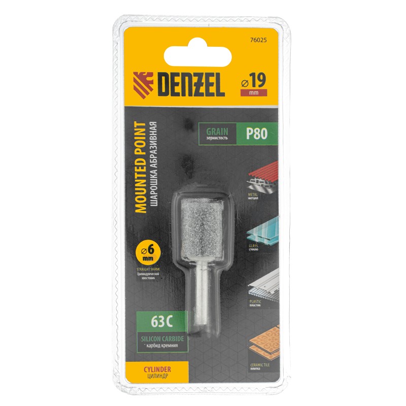 Шарошка абразивная, цилиндр, 19 x 25 мм, для дрели, хвостовик d6 мм, 63С Denzel