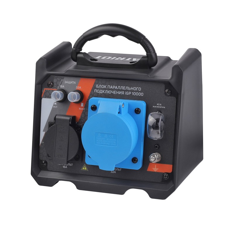 мощность 9.5 кВт-10 кВт, напряжение 230 В/50 Гц, розетки 1х16 А, 1х32 А, длина кабелей 80 см