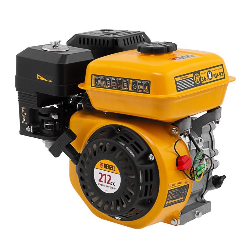 Четырехтактный бензиновый двигатель Denzel RX-17K 95101 мощностью 7 л. с. и объемом 212 см3, с типом горизонтального вала шпонка 19 мм, имеет ручной старт и воздушное охлаждение. Предназначен для использования в качестве привода садово-парковой и строительной техники (садовых измельчителей, мотопомп, бензиновых моек высокого давления и др.). Обеспечивает бесперебойное функционирование оборудования и эффективное выполнение сельскохозяйственных, строительных работ, а также решение прочих задач на загородном участке.