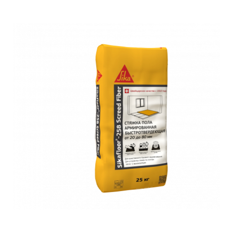 Стяжка для пола быстротвердеющая армированная фиброй для внутренних работ. Предназначена для предварительного выравнивания бетонных и цементно-песчаных оснований от 20 до 80 мм (локально от 10 до 100 мм). Пешеходная нагрузка через 8 часов при толщине 40 мм. Укладка покрытия допускается через 24 часа. Хорошая подвижность и пластичность. Тиксотропный, подходит для формирования уклонов.