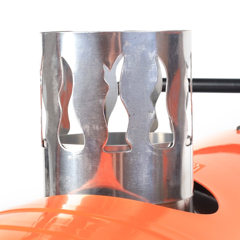 Топливо практически полностью сгорает в камере сгорания, нагревая многоконтурный воздушный теплообменник. Воздух, обдувающий горячий теплообменник, выгоняется в помещение. А продукты сгорания выводятся через отвод в верхней части корпуса.