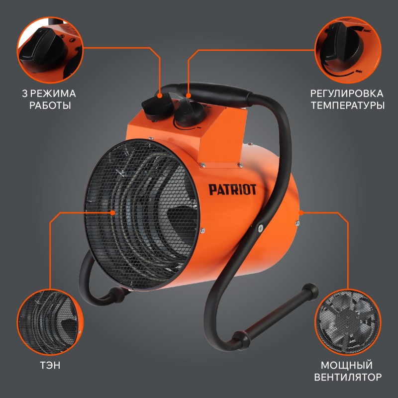 Тепловая пушка электрическая предназначена для обогрева воздуха в различных помещениях, таких как: промышленные ангары, склады, гаражи, торговые павильоны, строительные объекты и т.д. Корпус обогревателя выполнен в двойном исполнении, что не позволяет ему нагреваться во время эксплуатации. В жаркое время года возможно использование прибора в качестве вентилятора, без включения нагревательных элементов.